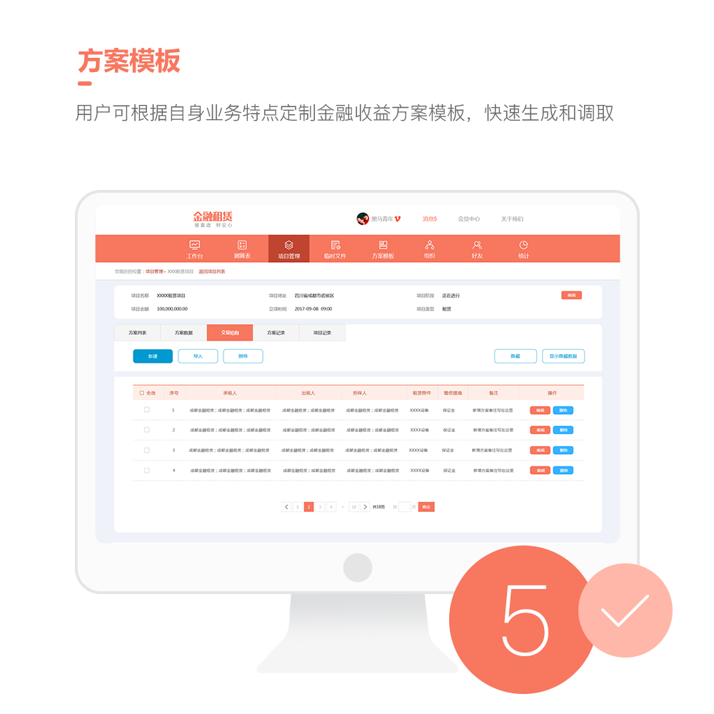 平臺提供個性化定制,一鍵導入測算數據與生成方案模板,管理各類金融方案。
