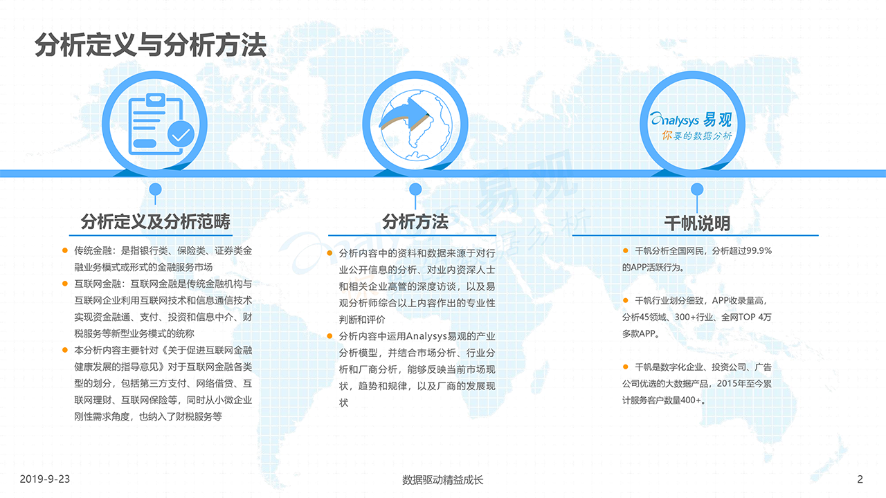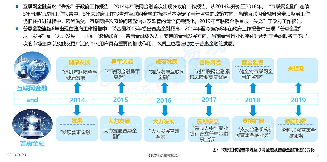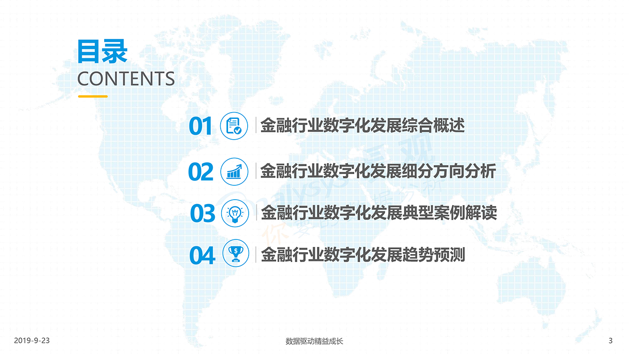 報告下載2019年9月23日,發布了《中國金融行業數字化發展專題分析2019》的分析報告。中國金融行業數字化發展專題分析內容包含互聯網金融各類型如第三方支付、網絡借貸、互聯網理財、互聯網保險等,同時從小微企業剛性需求角度,也納入了財稅服務等。分析從金融行業數字化發展綜合概述、細分方向分析、典型案例解讀和發展趨勢預測四個角度展開,清晰解讀金融行業數字化發展。
