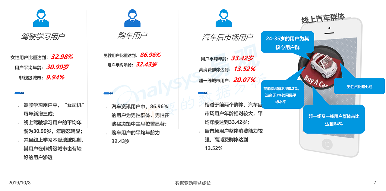 報告下載本分析內容主要分析對象是2019年汽車線上用戶。文章通過對2019年汽車線上用戶行為方式、消費習慣、興趣愛好等領域的剖析,了解用戶的生活形態和價值觀變化。