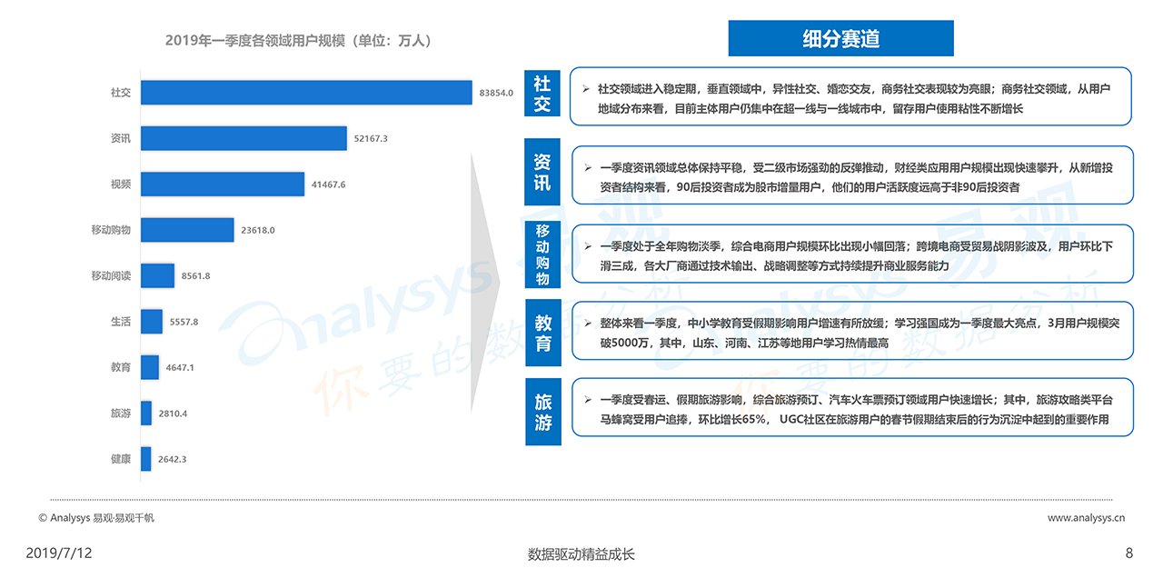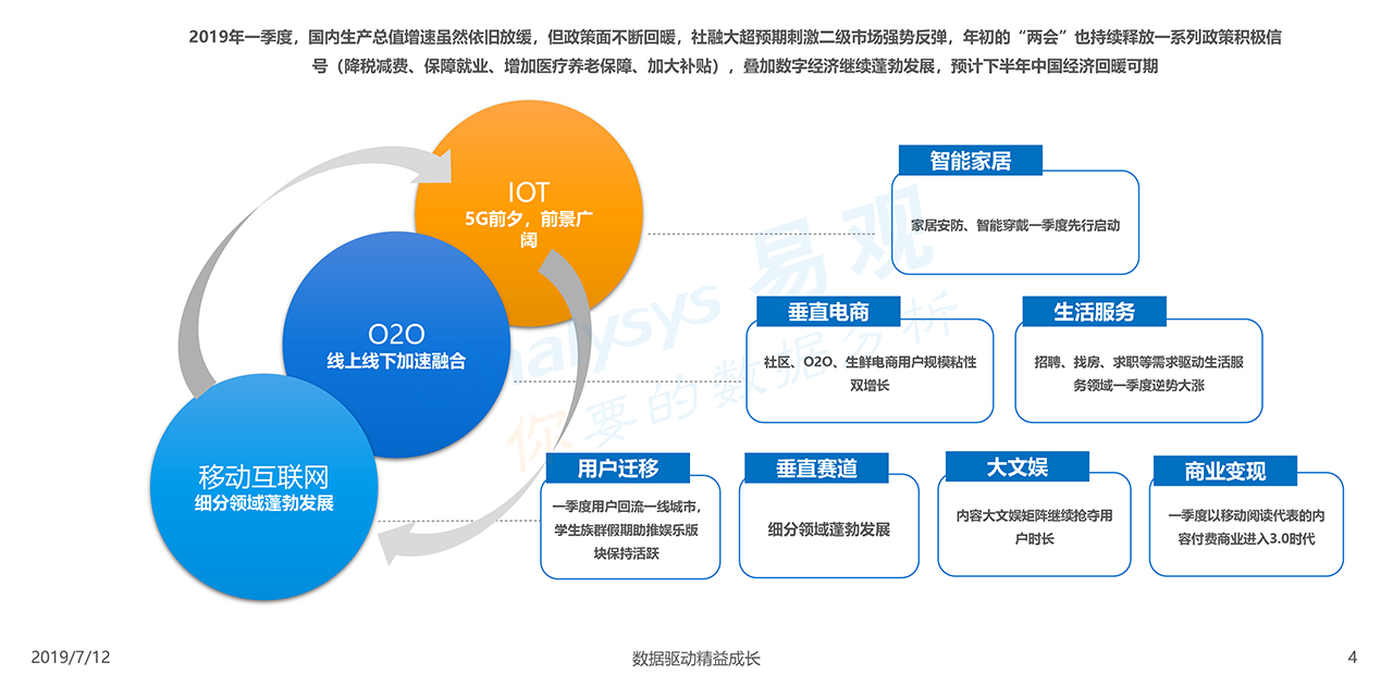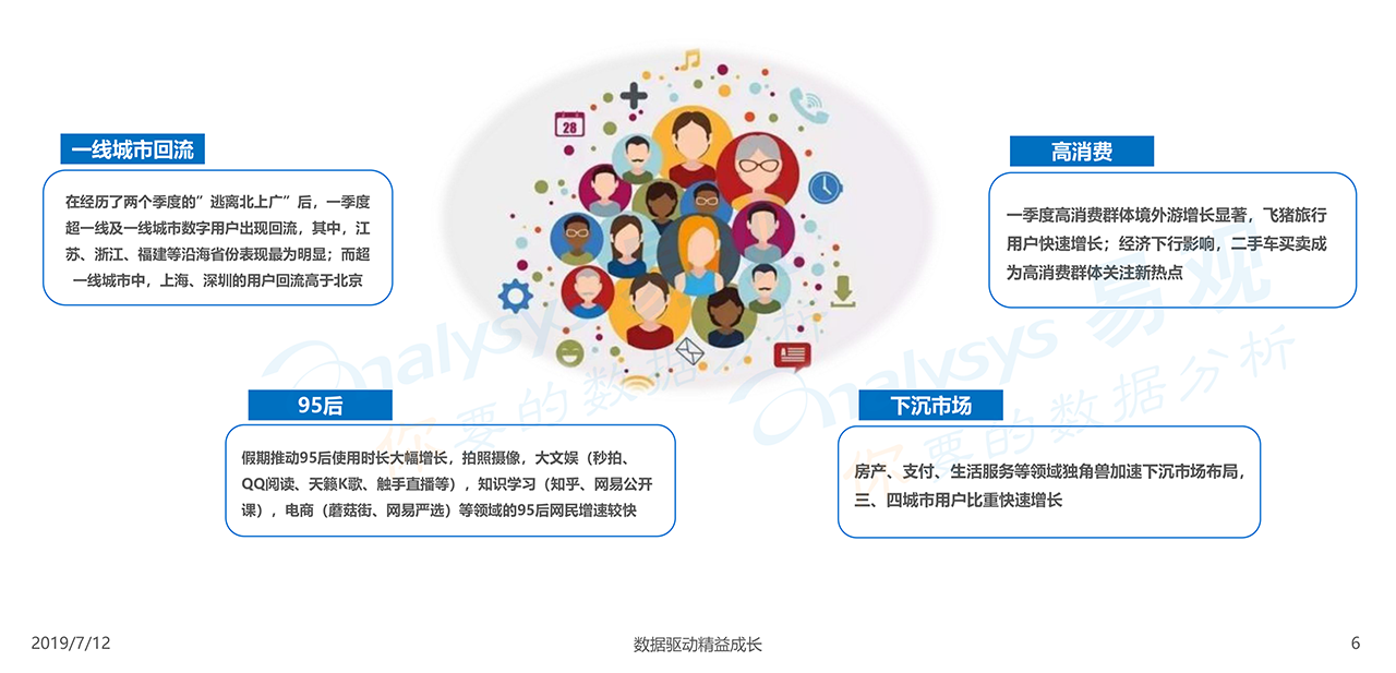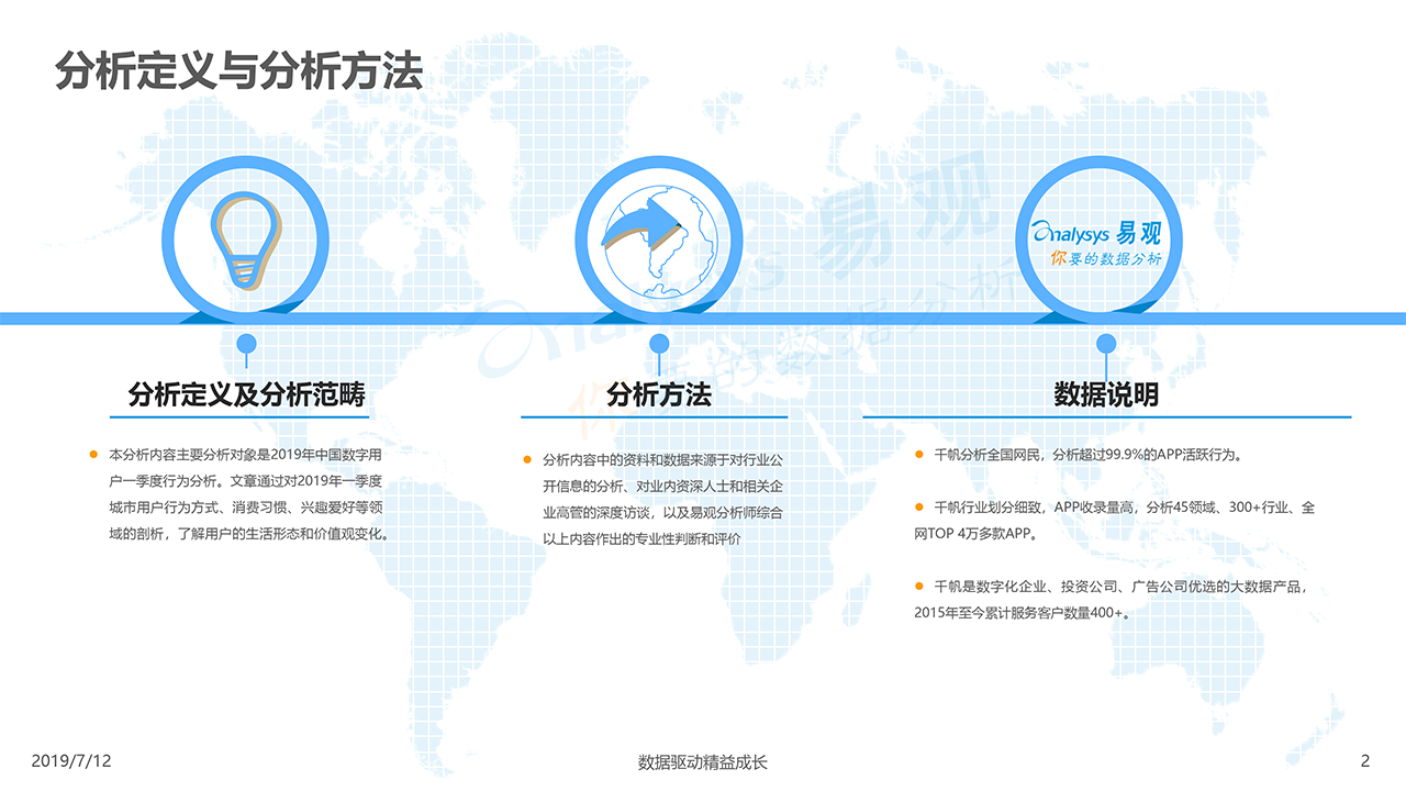 報告下載2019年7月12日,易觀發布了《2019年一季度數字用戶行為分析》分析報告。本分析內容主要分析對象是2019年中國數字用戶一季度行為分析。文章通過對2019年一季度城市用戶行為方式、消費習慣、興趣愛好等領域的剖析,了解用戶的生活形態和價值觀變化。